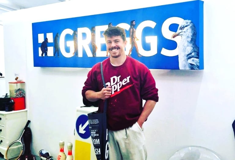 I’m drawn to a process of painting the cultural constructs, everyday heroes, zeitgeists and rituals from my generation. My work follows a not well trodden path from an authentic working-class viewpoint that positions itself with the tenderness of working-class lived experiences and areas of society. I produce artwork as a product of absorbing my surroundings and making sense of the world around me, through my work I’m keen on questioning material hierarchy and the constructs that sit within the conventions of presentation, in a strategic manner that is intentionally absurd and Playful.